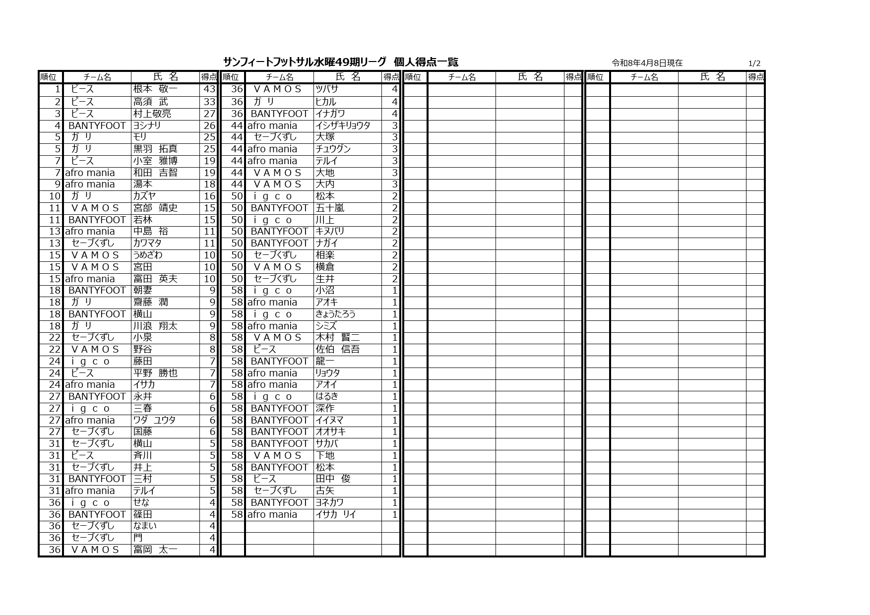 | リーグ名称 | 試合終了日 | 試合開始日 | 募集締切日 |
