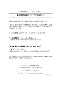 いつもご利用ありがとうございます。昨日茨城県独自の緊急事態宣言が発表されたことを受け、ピッチレンタルのみ通常どおり営業し、不特定の方が接触する可能性がある8/6から8/19までのリーグ戦・エンジョイゲームナイト・水戸ホーリーホックおとな部を中止する事としました。楽しみにされていた皆様には本当に申し訳ございません。また、スクールにつきましては各スクールに詳細をお問合せ下さい。